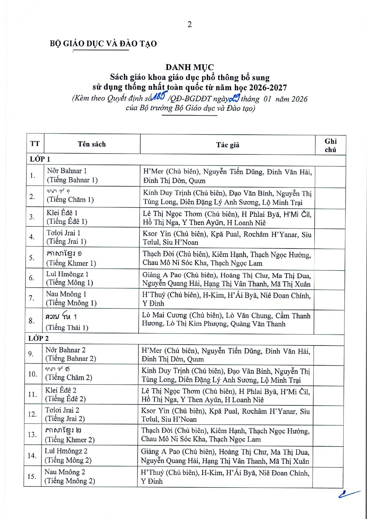 Quyết định bổ sung sách giáo khoa giáo dục phổ thông thống nhất trên toàn quốc